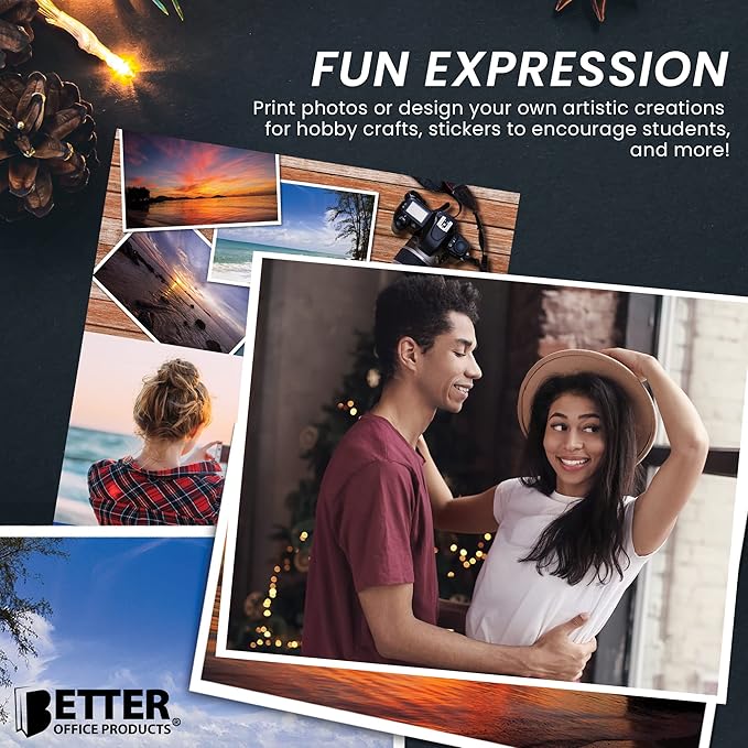Better Office Products Self-Adhesive Photo Paper, Sticky Photo Paper, Glossy, 8.5 x 11 Inch, 50 Sheets, 135 gsm, Letter Size, 50-Count Pack