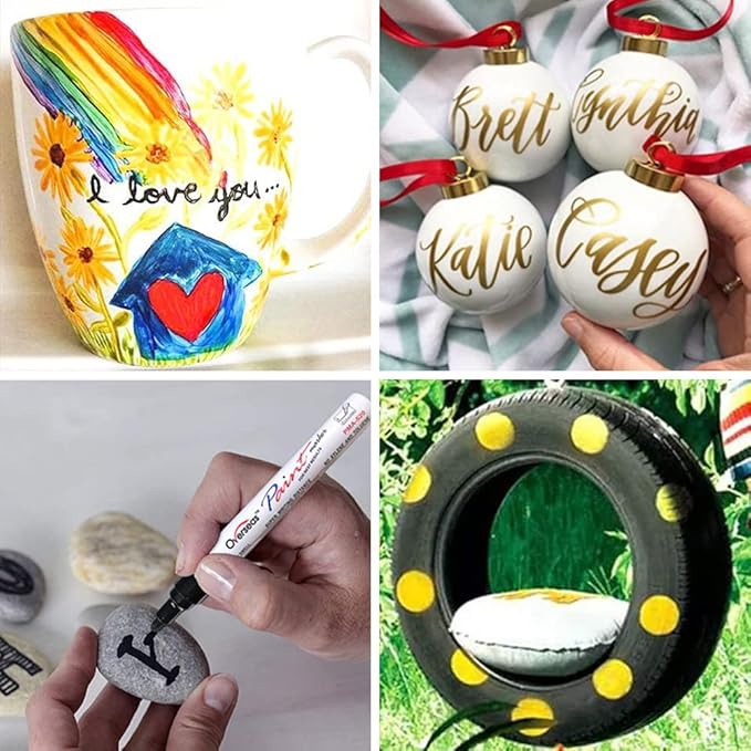 - Various Use: These permanent paint pens can be used on multiple surfaces. You can use on rock, ceramic, wood, leather, plastic, fabric, canvas, stone, glass, metal, chalkboard, craft supplies, etc