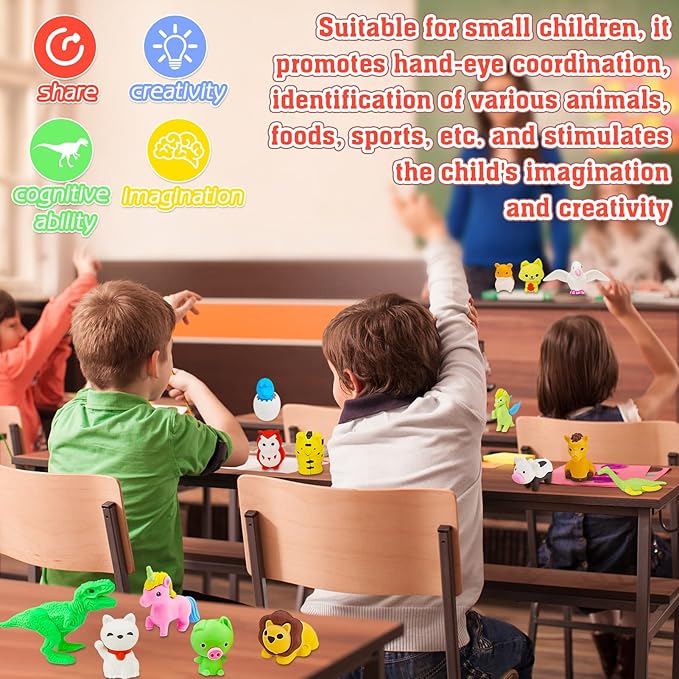 - ENDLESS PLAY & LEARNING:These takeapart erasers aren’t just stationery – they’re fun toys in disguise! Kids develop fine motor skills while rebuilding 3D erasers into zoo animals or fantasy creatures. Build a desk pets for kids classroom community by letting students collect and trade eraser pals. Teachers adore using them as mini erasers for kids bulk classroom incentives – whether for homework rewards or calming fidget tools