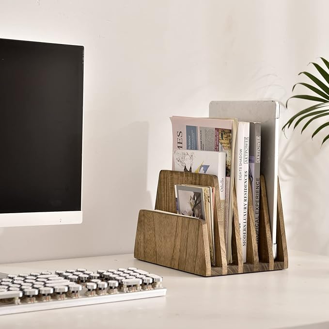 - [FUNCTIONAL & 5 SLOTS]: The desktop paper organizer easily holds all standard size mail, file folders, papers, books, documents for home and office.