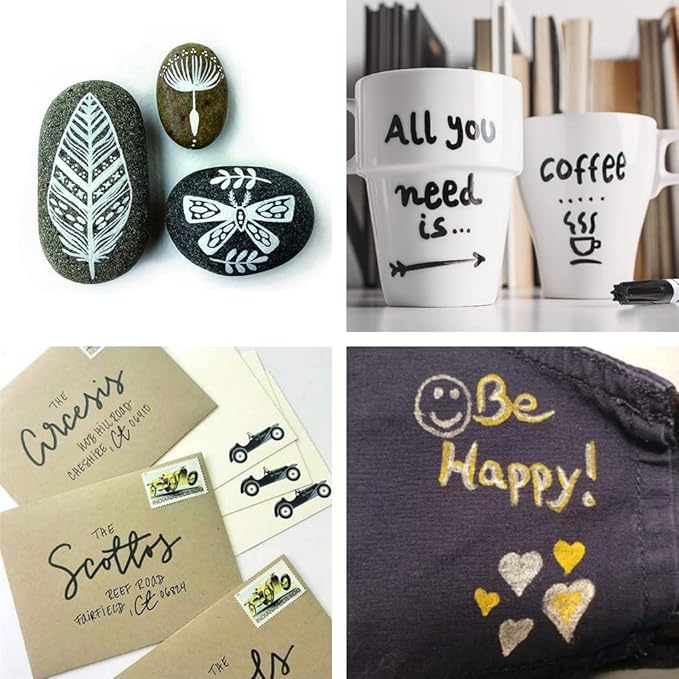 - 【Multipurpose】These wonderful paint pens can be used on multiple surfaces, such as rock, ceramic, wood, leather, plastic, fabric, canvas, stone, glass, metal, chalkboard craft supplies, etc