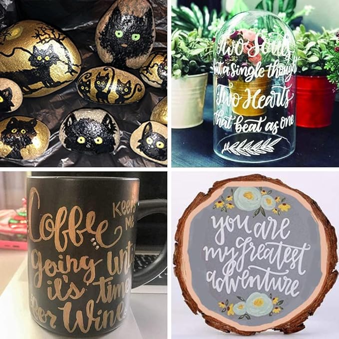 - 【Multipurpose】These wonderful paint pens can be used on multiple surfaces, such as rock, ceramic, wood, leather, plastic, fabric, canvas, stone, glass, metal, chalkboard craft supplies, etc