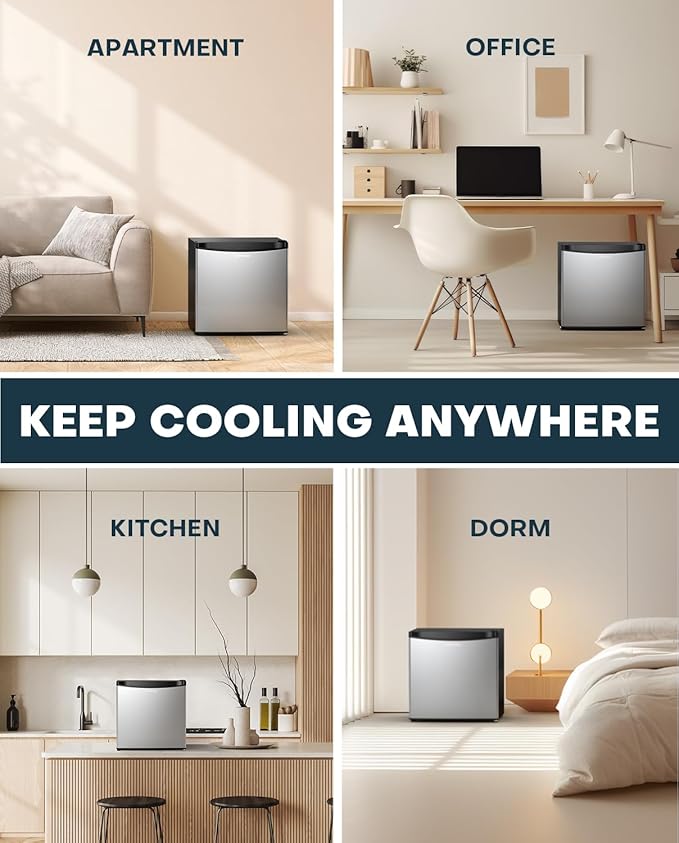 - 38dB Quiet: Operates at a low noise of 38 dB, this fridge brings the peace and refreshing cold at the same time. Free of any disturbance while it’s keeping all your food nice and fresh, ideal for environment like dorm, bedroom, office, kitchen and study
