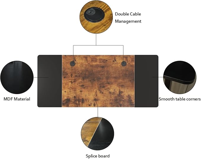 - Sleek design: Functional and modern, the desk’s sleek and contemporary design is a suitable addition for any living space. The particle top is splice board.