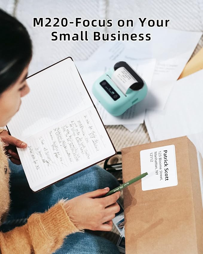 Phomemo M220 Label Maker, New Flagship 3.14 Inch Bluetooth Thermal Label Printer for Barcode, Address, Labeling, Mailing, File Folder, Portable Maker Easy to Use, Support with Smart Phone&PC