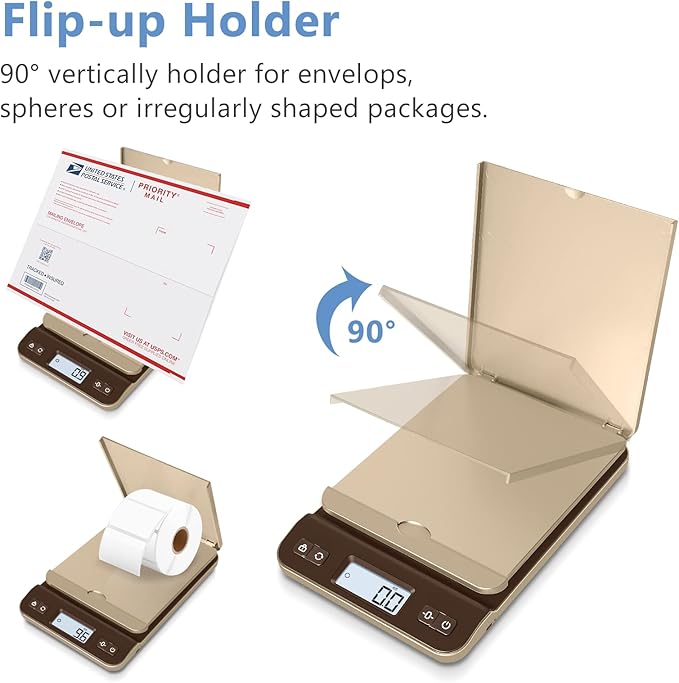 - FLIP-UP HOLDER & EASY STORAGE: The lid of the package scale is a compact holder that opens to 90° vertically to hold spheres or other irregularly shaped packages or items for easy weighing. The lightweight and compact design makes the scale easy to store and move