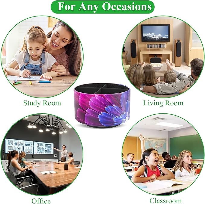 - ✎360° Revolving Design: You can freely rotate the pen holder steadily left and right,unique spinning base design allows easy access to items from any directions.The non-slip pads on the bottom keep it stay in place when rotating.