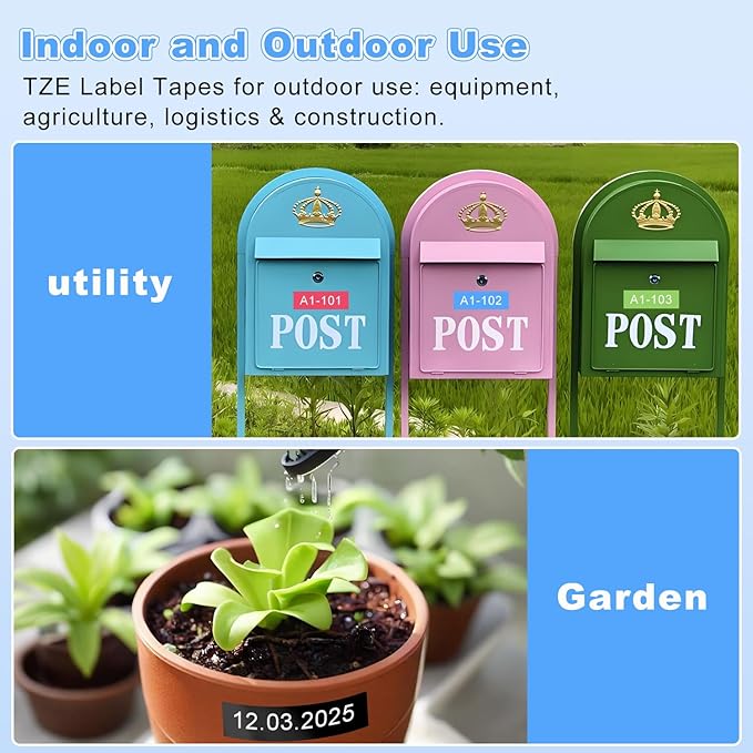 - TZe TZ Tape Laminated Colored labels 12mm 0.47 Inch: Strong Adhesion, Water Resistant, Chemical Resistant, Abrasion Resistant, Temperature Resistant, Fade Resistant. These Label Maker Tapes are Suitable for Indoor and Outdoor Use