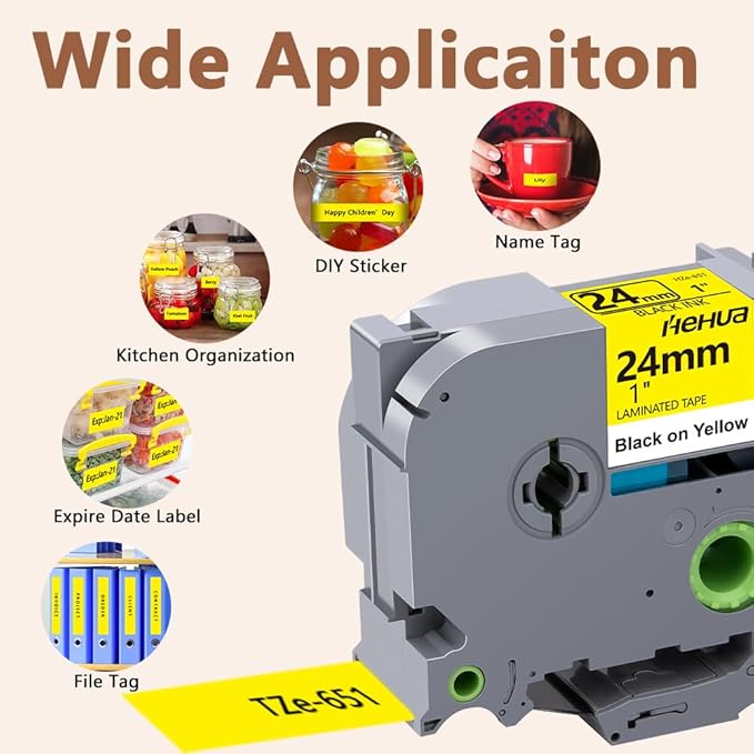 - Wide application - The replacement compatible for Brother label maker refills 24mm tze-651 is widely used at home, office, factory and school
