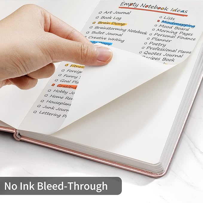 - Multifunctional Cover: The hard cover is made of vegan leather, and designed with a pen loop, an elastic band, two ribbon page markers, an expandable inner pocket.