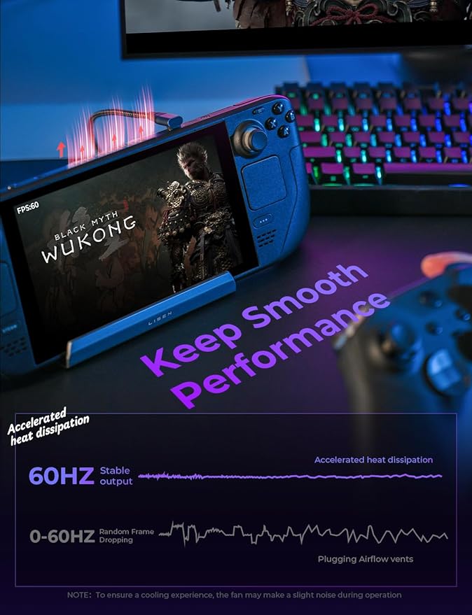 - Dual Cooling Fan System: The dual cooling fan system in our Steam Deck OLED Docking station revolutionizes heat management by accelerating the influx of cooling air. This enhanced cooling efficiency not only significantly extends the battery life of your Steam Deck but also safeguards it against overheating-related issues. Say goodbye to the woes of system crashes or lost frames, and embrace a consistently smooth gaming experience.