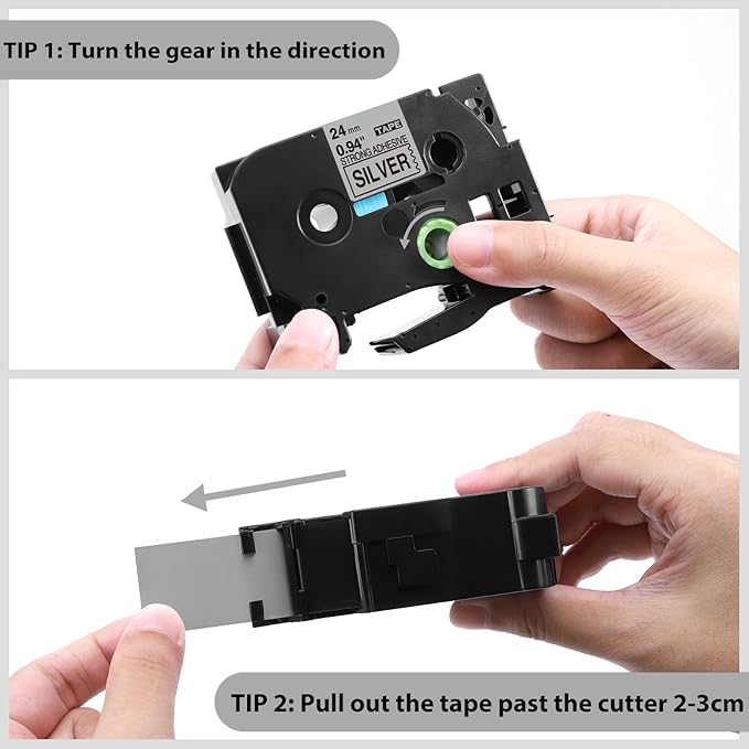 - Easy Peel: The split back of the ptd600 TZeS951 24mm label tape is easy to remove. Rotate the wheel in the direction of the arrow to tighten the tape before using it. Easy in and easy out, plug, and play.