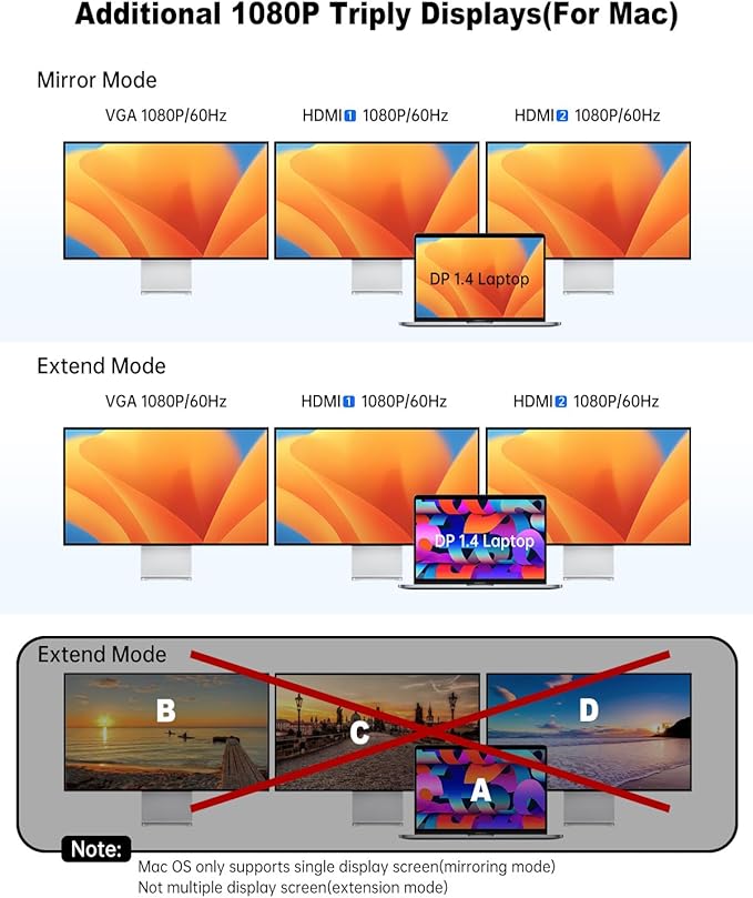 - 【4K in Full Glory】 With the 60Hz USB C to HDMI adapter included in this USB C docking station, you can enjoy ultra-high-definition visual and audio experience instantly. It supports mirror or extending mode via dual HDMI ports. Catering to a single 4K/60Hz display, dual 4K/30Hz displays, or three 1080P/60Hz displays or four 1080P/60Hz displays - making it ideal for any work or entertainment setup.