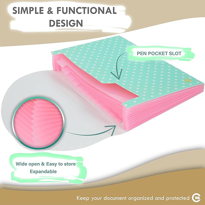 - [Sleek and Stylish Design] Our Sleek and Stylish CNK Accordian File Organizer come in 3-Packs of 13 Pocket expandable file folder with unique hand picked colors that is elegant and stylish.