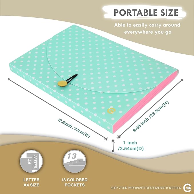 - [High Quality Material] Our 13 Pocket Expanding File Folder is made from quality PP Plastic material, Acid-Free, PVC-Free to ensure durability, water resistant and long lasting cover from every uses.