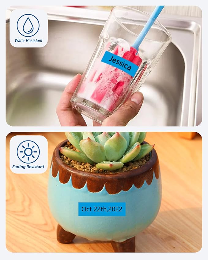 - These compatible for brother label maker tape 24mm 0.94 TZe-551 TZe551 have strong adhesive and no sticky residue when you remove it. The split back design of ptouch label tape 24mm blue tape is very easy to peel off