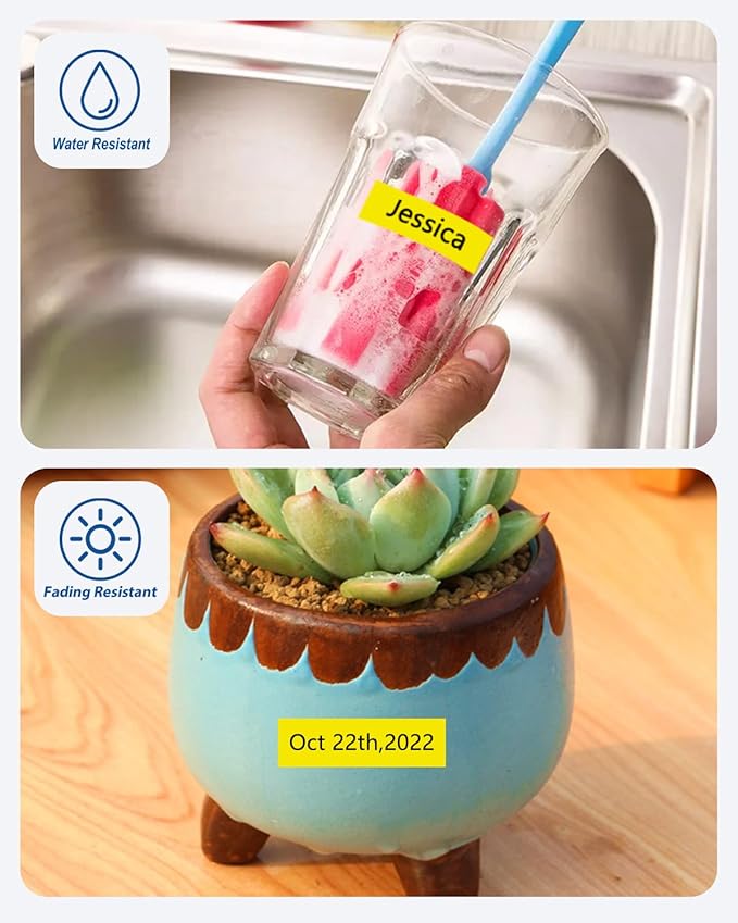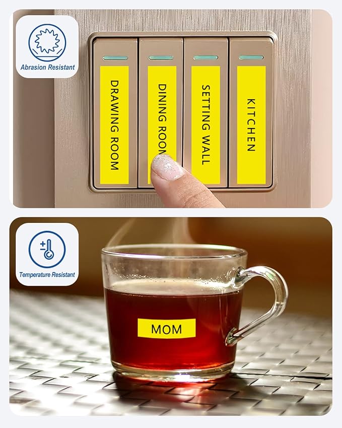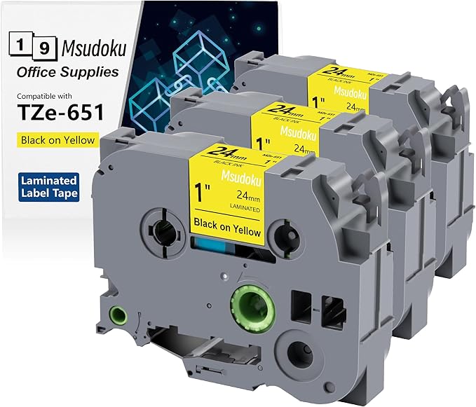 - These compatible for brother label maker tape 24mm 0.94 TZe-651 TZe651 have strong adhesive and no sticky residue when you remove it. The split back design of ptouch label tape 24mm yellow tape is very easy to peel off