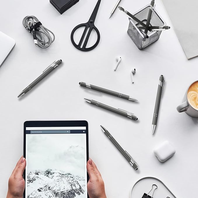 Tenare 12 Pieces 2 in 1 Stylus Metal Ballpoint Pen with Stylus Tip, 1.0 mm Black Ink Ballpoint Pen for Touch Screens(Gray and Silver)