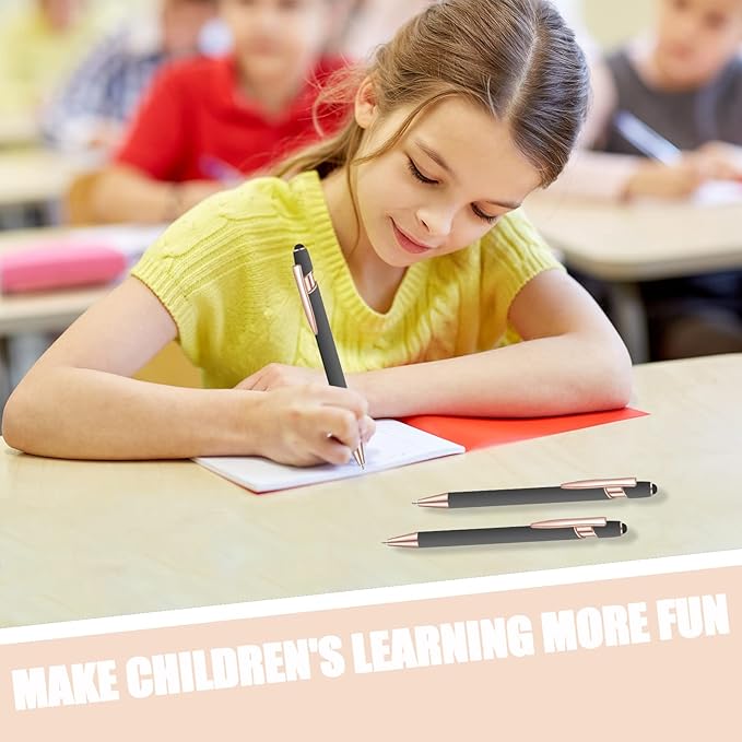 12 Pcs Blue Ink Ballpoint Pen with Stylus Tip, 2 in 1 Gift Pen for Touch Screens (Gray Rose Gold)