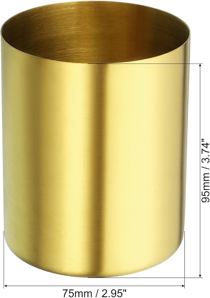 - Color: Golden; Material: Stainless Steel; Overall Size: 75 x 95mm / 2.95 x 3.74 inch (D*H); Package Content: 3 x Round Pen Organizer for Desk
