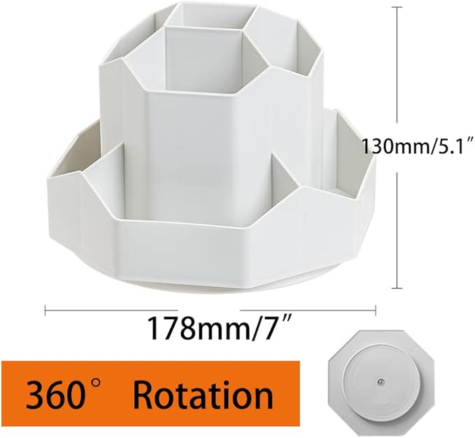- -ROTATING DESKTOP ORGANIZER - Simply spin this pencil holder to store or take out your things, this storage organizer allows you to keep all of your things within reach. Our office plastic desk organizer with divided 9 compartments that will organize pens, pencils, , ruler, clips, scissors and other office accessories separately.
