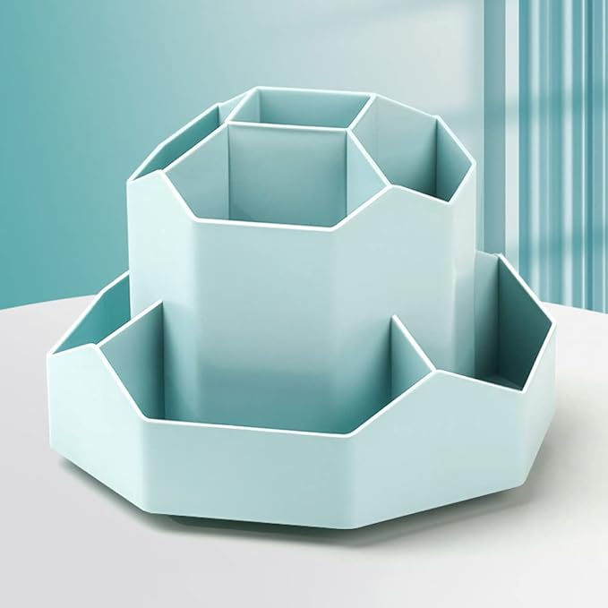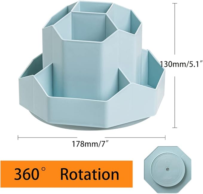 - -ROTATING DESKTOP ORGANIZER - Simply spin this pencil holder to store or take out your things, this storage organizer allows you to keep all of your things within reach. Our office plastic desk organizer with divided 9 compartments that will organize pens, pencils, , ruler, clips, scissors and other office accessories separately.