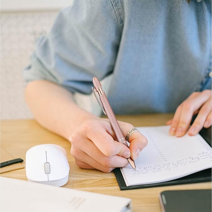 LINFANC 12 Pack Rose Gold Ballpoint Pen with Stylus Tip, 1.0 mm Black Ink Smooth Writing Pens, Metal Stylus Pens for Touch Screens
