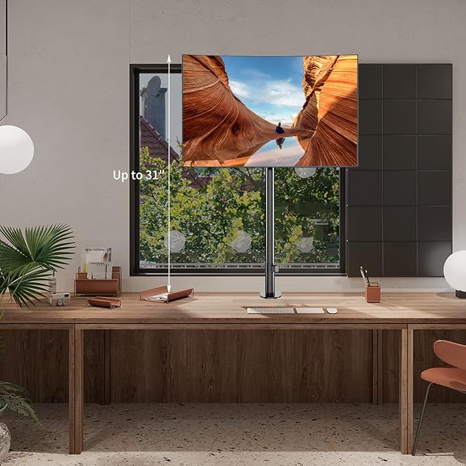 Pholiten Extra Tall Single Monitor Desk Mount Stand with 31.5inch Pole for 13 to 32 inch Screens,Fully Adjustable Monitor Arm Mount for Desk,Holds up to 22lbs