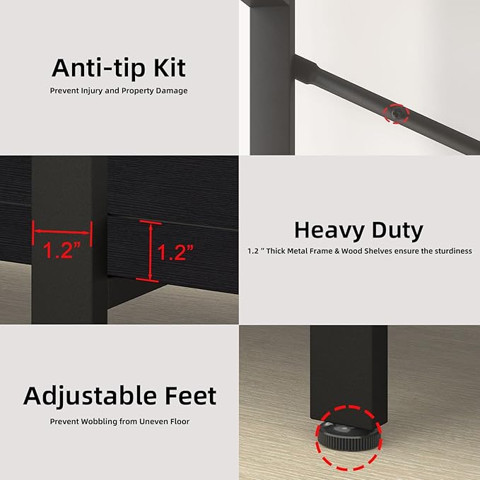 - 【Anti-tip Kits & Easy Assembly 】:Please remember to install the anti-tip kits on the wall for better stability and less unexpected injuries. With smart design and all tools included, you never get stuck with the hard assembly jobs for the black bookcases and book shelves 5 shelf.