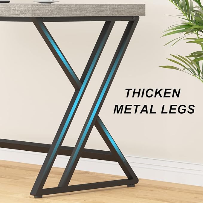 - Durable and Sturdy Construction: Built to make getting down to business a breeze, this sleek metal framed grey computer desk is tougher than it looks, made with heavy-duty metal steel and a thick tabletop. Ergonomic construction is made to hold a good amount of weight; sturdy and scientific construction can supports up to 360 pounds.