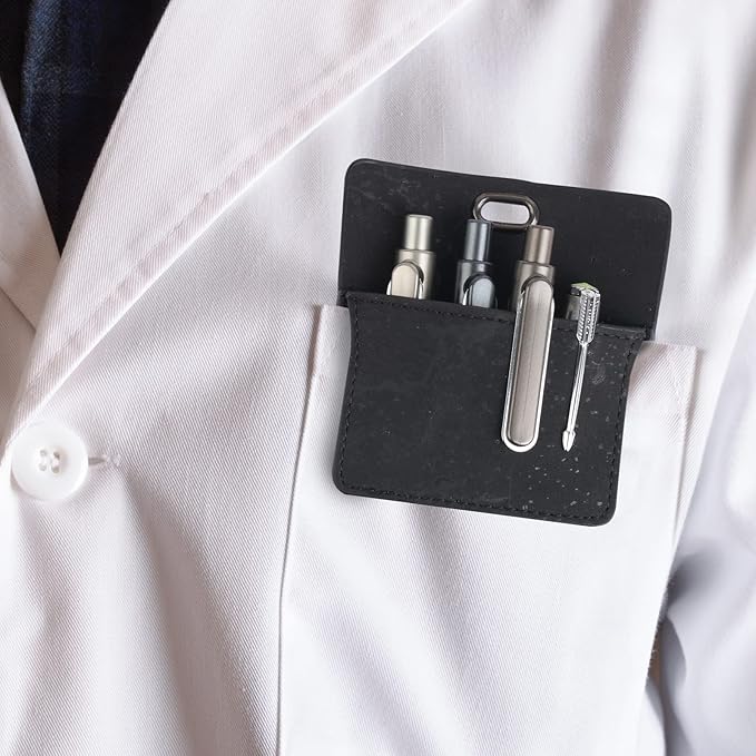- Extended Pocket Protector Flap: Unlike a standard PU or leather pocket protector for shirts, these high quality cork shirt pocket protectors feature a longer, 2 inch front flap. This extended flap allows for ease of use while wearing heavy duty work shirts and lab coats.