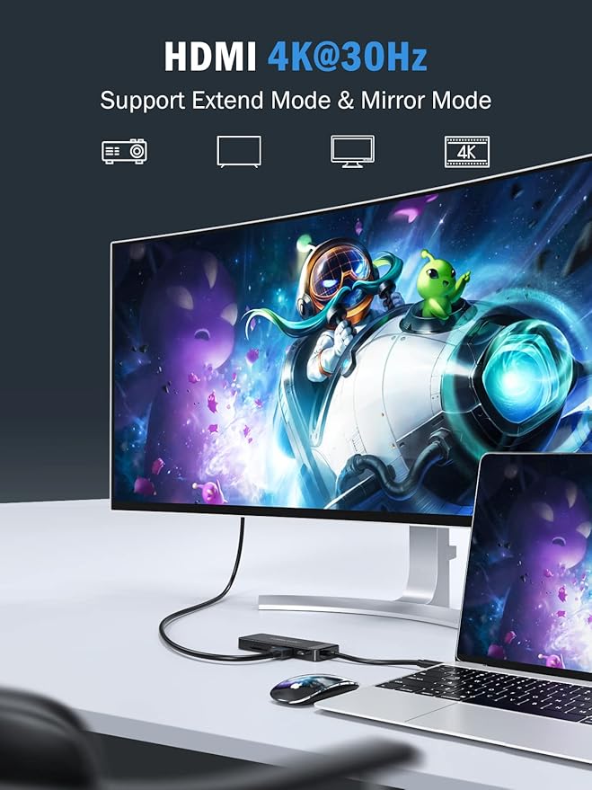 - 【No driver required】This 9-in- 1 USB-C Hub, without any driver or software, plug and play, support extended mode or mirror mode.