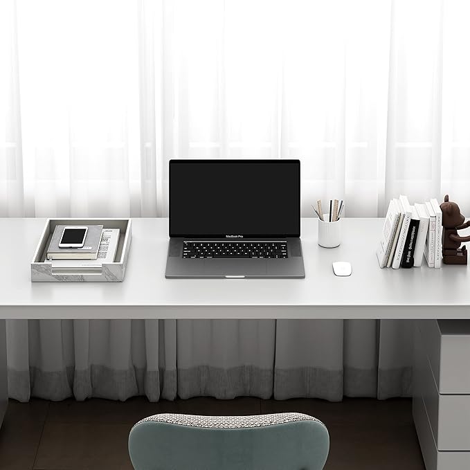 Leather Letter Tray, THIPOTEN Elegant Desk Organizer for Office Supplies, Mail, Paper, File, Magazine, Perfect Office Organization for Desktop(White)