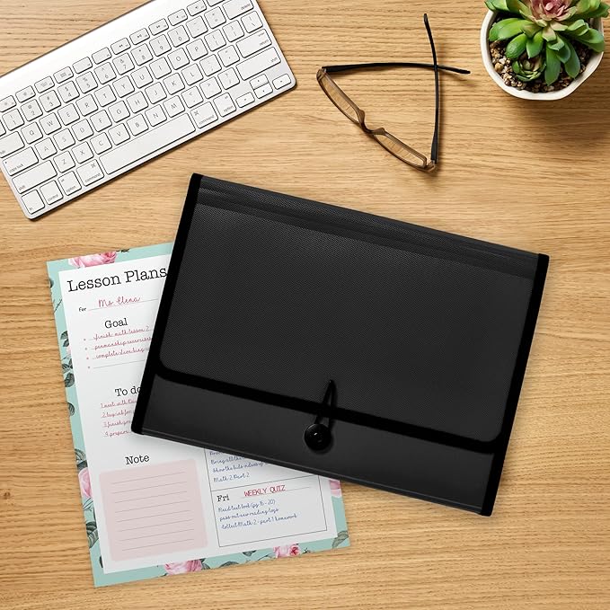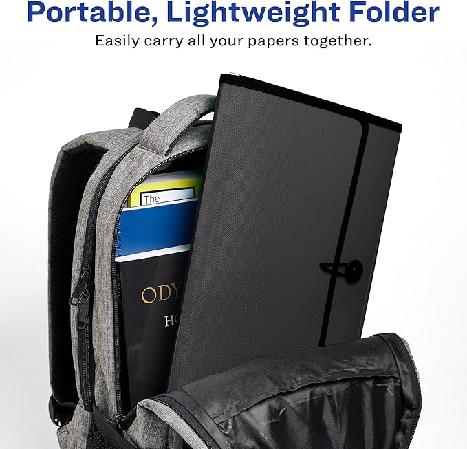 - Carry and organize important documents on the go with this portable and lightweight 7-pocket black accordion folder