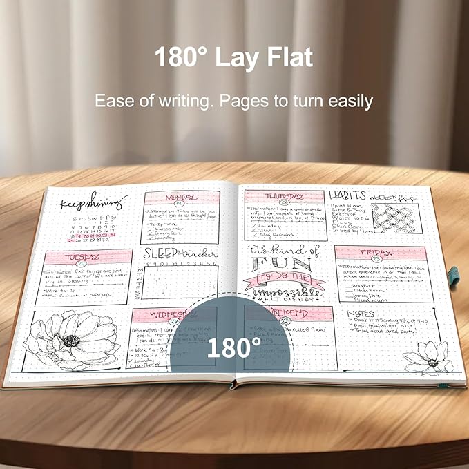 - Faux Leather Soft Cover: The premium sturdy soft cover, which can lay flat at 180°, makes the journal more durable and comfortable to touch. It provides a protective layer for the pages and offers a comfortable writing surface