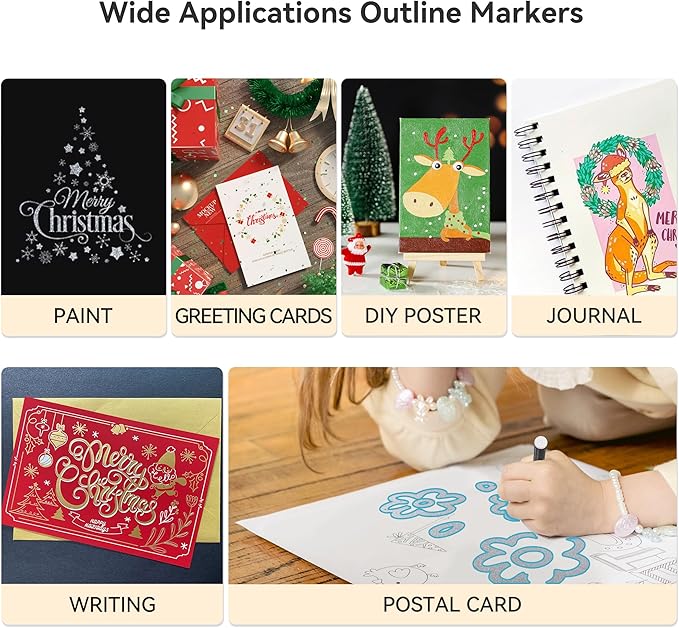 - 12 Colors Double Line Outline Paint Markers: There are 12 different colors in the package, including gold, silver, red, blue, green, purple, yellow, light pink, orange, brown, black and white. Meet your different needs for various craft projects