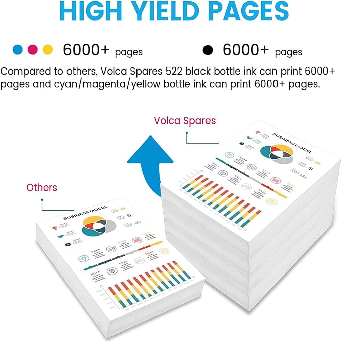 - ✅The ink refill bottles provide clear and high quality printout. Black T522 ink up to 7500 pages, cyan/magenta/yellow up to 6000 pages