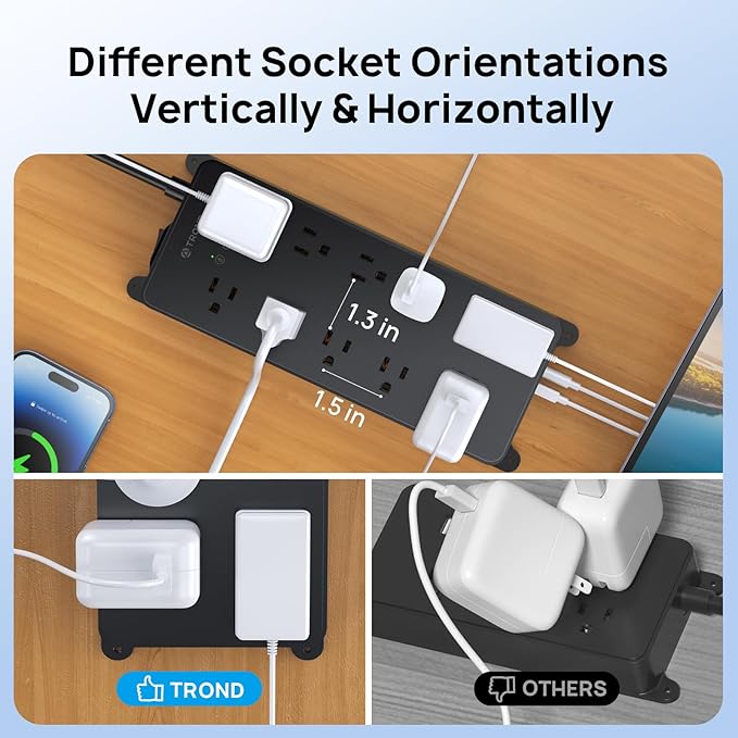 - Power Strip Wall Mountable: Four mounting holes on the two sides can enable to use screws to mount this wall mount power strip to the wall firmly, including entertainment center, behind tv, dorm room, guest room, garage, desktop, under desk/counters, workbenches, etc. which can save space for you