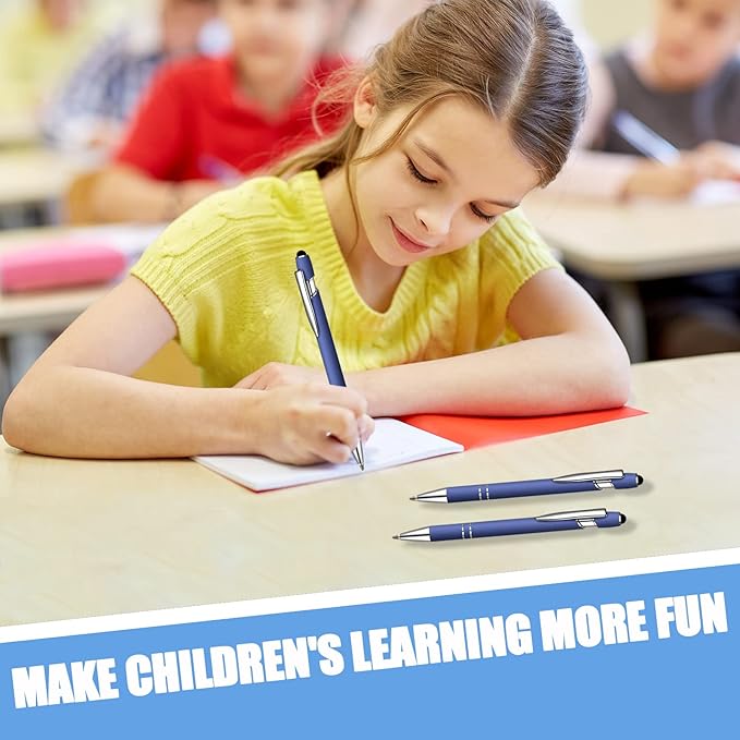 - You will get: 12 pieces ballpoint pens with stylus tip, enough for your daily needs and replacements; The size of a single metal stylus pen with stylus tip is 5.5 x 0.4 inch/ 14 x 1 cm, which is the proper size for a pen; Note: The ink is blue