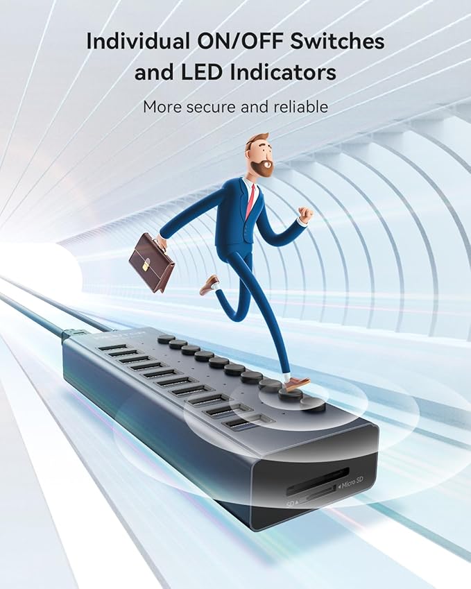 - 👍【Individual On/Off Switches】Wenter Powered USB Hub comes with Individual switches and LED lights for each USB 3.0 port, allowing customers to flexibly turn on or off specific devices as needed. Minimize the hassle of cable clutter while always ensuring a safe working condition for Wenter customer.