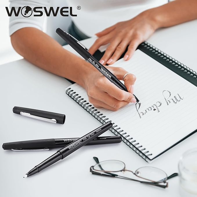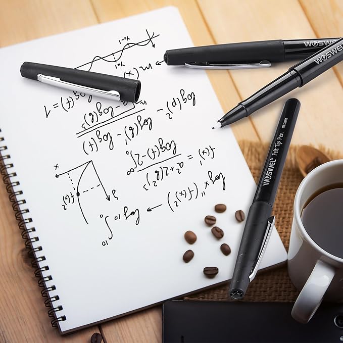 - Set of 32 Black Felt Tip Pen: 0.7mm Medium tip pens set has 32 black pens.