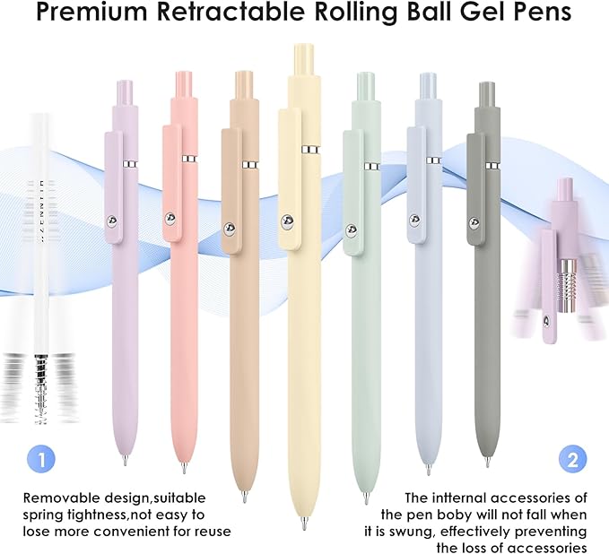 - 【Birthday Gifts for Men Women】With the retractable design, you can easily click the pen cap, and the tip will extend or retract automatically, preventing ink from accidentally staining your belongings, books, or pockets. The sleek, stylish barrel gives the pen a modern, professional look. The soft silicone grip brings a soft touch feeling which makes each gel pen comfortable to hold for long writing without sore, making it a good tool for works, back-to-school supplies, college and preppy stuff