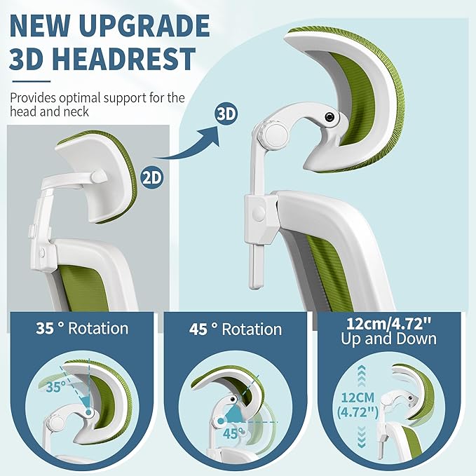 - Flexible Adjustable Functions:The rolling swivel computer chair is built with adjustable heigh: 10cm/3.9inch lift up and down, 5cm/2inch adjustable headrest(30° flip up) and backrest, 90-120° tilt adjustment, 90° flip-up handrail and 360° free rotation, supporting shoulder, back, waist and coccyx relaxation. Upgraded adjustable headrest and lumbar support, widened backrest and high-density armrests, which enhance ergonomically tailored comfort, to meet the needs of work and leisure time.