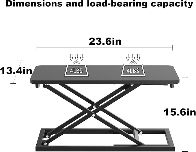 - Decorated with a 23.6 inch wide 13.4 inch deep black single scissor style keyboard and mouse riser, it is suitable for transforming any table into a standing table. Also suitable for laptops.