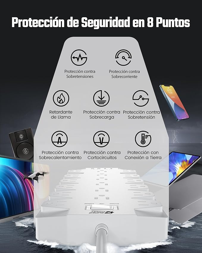 - 【ALL-Round Safeguard】 Built with surge-protective units like TVS, MOV and GDT, this USB surge protector provides 2100 Joules of surge protection against dangerous surges, spikes & lightning. Together with a fire-retardant casing, overload protection, grounded protection, short-circuit protection, over-current protection, over-voltage protection, and overheat protection, SUPERDANNY heavy duty power strip will safeguard your devices and your home just like the aircraft carrier it resembles.