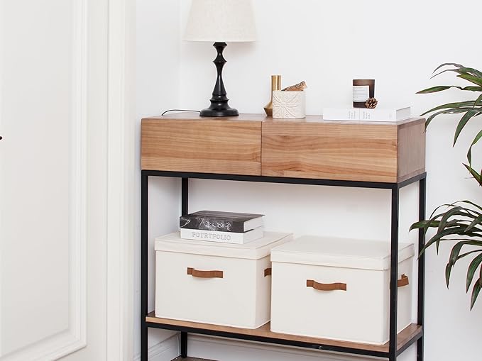 - Dust-proof storage bins feature flip-top lids and 3 soft sewn-in handles on the front and both sides.