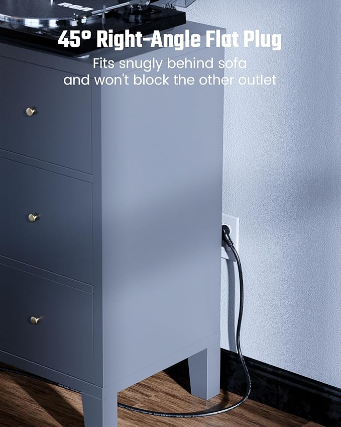 - 【Mountable & Flat Plug】 With 4 T-shape mounting holes, the included 4 screws and 1 drill template, this big power strip can be easily mounted on walls, behind the TV, or under the desk, keeping organized. The space-saving 45° angled flat plug fits snugly behind furniture and won't block the other outlet