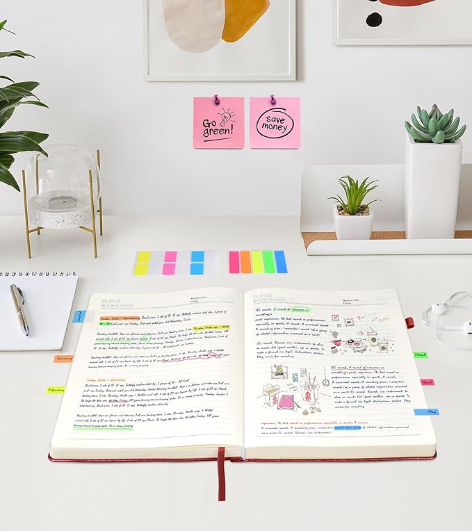 - 【Upgrade Lined Journal Notebook】Comes with 1 elastic closure band & 1 elastic bookmark band, more stable. An expandable inner storage pocket to keep track of appointment cards,notes,receipts,and more. 1 gift of multicolor index tabs stickers for papers classifying and marking.