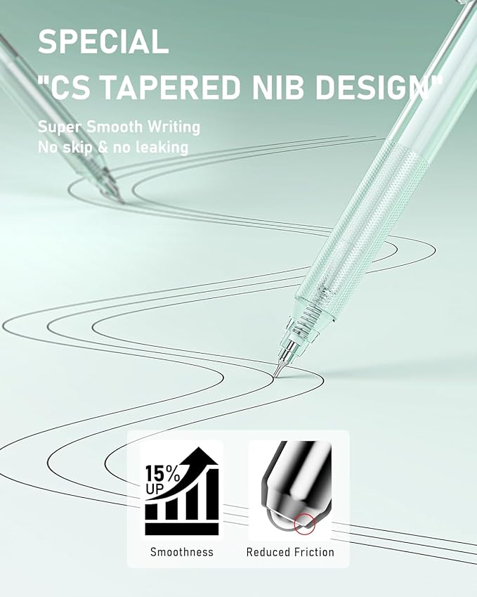 - Smooth & Versatile Nibs: Enjoy buttery-smooth writing with premium cute pens that glide effortlessly. Includes ST, bullet, CS tapered nibs, and a 4mm highlighter tip—ideal for notes, journaling, drawing, and highlighting. Built-in spring tips ensure steady ink flow and crisp lines for a smooth, stress-free writing experience