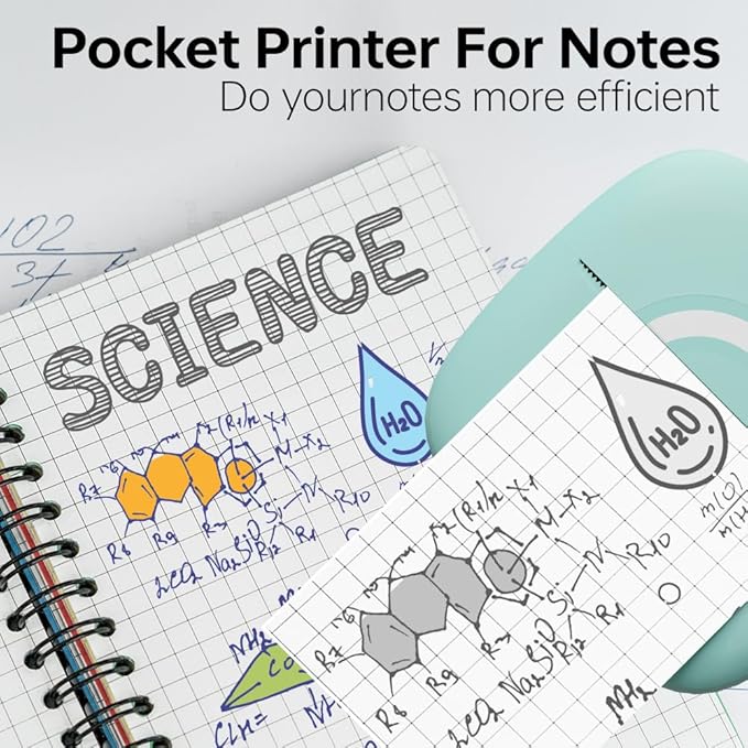 - [Enjoy More Interesting Life] New style inkless pocket printer is used to print pictures/photos,memo,shopping lists,study/meeting notes and etc.Mini sticker printer machine,it's a great helper to decorate your bullet journal more memorable,to make photos more stylish,to organize study notes more efficiently,to keep track of happiness moments at anytime etc.Undoubtedly,it must be a special gift for children,students,teachers and DIY craftsman on Christmas,Children's Day and Thanksgiving day.